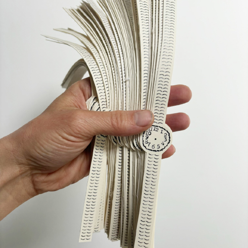 Fabric-backed paper watches made by Lenka Clayton will be given out to the first 60 people.