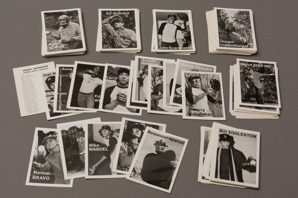 | Edited by Mike Mandel, Jason Fulford, and Sharon Helgason Gallagher. Text by Sandra S. Phillips. Published by J&L Books with D.A.P. / Distributed Art Publishers. Mike Mandel is best known for his project The Baseball-Photographer Trading Cards, as well as his collaborations with the late Larry Sultan. Mandel employs conceptual structures and social commentary underneath a playful presentation. For The Baseball-Photographer Trading Cards, Mandel travelled across the US in 1974, posing 134 photographers and curators as ball players, and photographing them. Participants included famous figures (Ansel Adams, Imogen Cunningham, Harry Callahan, Minor White, Aaron Siskind, William Eggleston, Ed Ruscha, John Szarkowski) as well as lesser-known artists. Cards were made of each participant, and included “stats” such as height, weight, home, favorite camera and a personal statement. The original cards were sold in packs of ten.This boxed collection contains facsimiles of Mandel’s original publications, long out-of-print, including The Baseball-Photographer Trading Cards, Myself: Timed Exposures, Seven Never Before Seen Portraits of Edward Weston, plus previously unpublished work and ephemera from the projects, including selected facsimile contact sheets from the baseball photo shoots, Motel Postcards, People in Cars, Mrs. Kilpatric, a letter to Mandel from Charis Wilson regarding Edward Weston and a pack of ten of the original 1975 baseball cards. Mike Mandel (born 1950) is an artist who has been working primarily with photography since the early 1970s. He teaches at the School of the Museum of Fine Arts, Boston, and is a recent visiting lecturer at the Department of Visual and Environmental Studies at Harvard. A retrospective of his work is scheduled for 2017 at SFMOMA. |